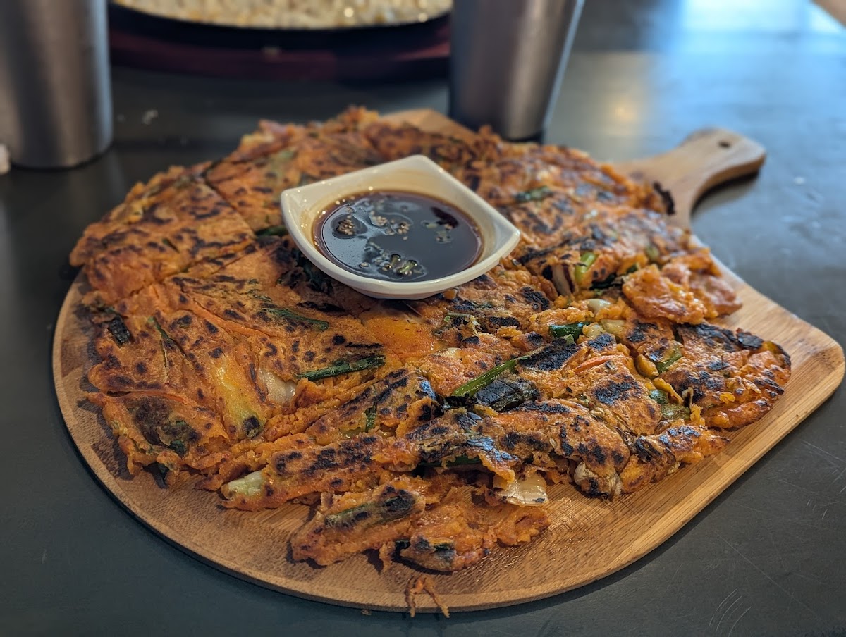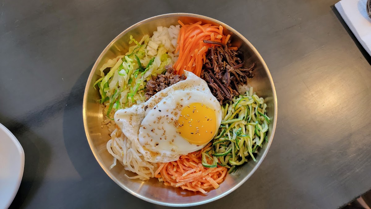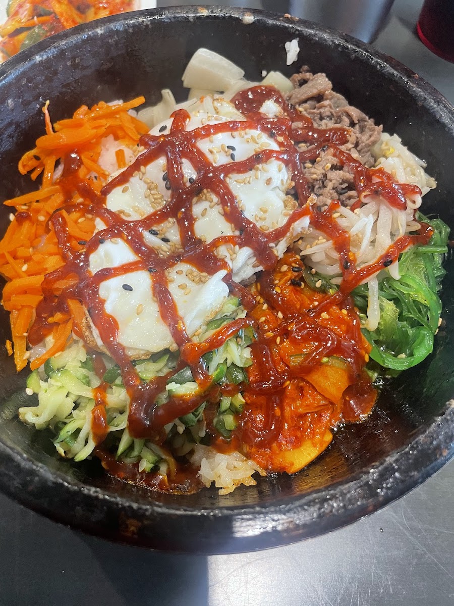 The food is where this place really shines. One of the standout dishes is the Meat Jeon, lightly crisped and deeply savory, making it a comforting choice whether you’re dining solo or sharing. The Dolsot Bibimbap arrives sizzling in a stone bowl, with rice that crisps at the bottom and layers of vegetables that feel fresh and balanced. Every bite has texture, warmth, and depth, which makes the experience feel satisfying without being heavy.